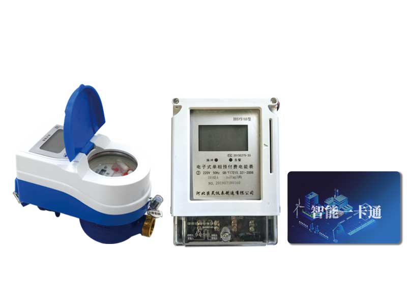 水電一卡通智能水表具有預(yù)收水費(fèi)功能,此表為一戶一表一卡。用戶將水費(fèi)交給管理部門,管理部門將購(gòu)水量寫入IC卡中,用戶將IC卡刷卡水表,水表即自動(dòng)開關(guān)閥供水,在用戶用水過(guò)程中,水表中的微電腦自動(dòng)核減用水量,所購(gòu)水量用到報(bào)警時(shí),水表自動(dòng)關(guān)閥斷水。此時(shí)將IC卡貼近水表感應(yīng)區(qū)打開閥門繼續(xù)用水,當(dāng)剩余水量用盡,水表自動(dòng)關(guān)閥斷水,用戶必須重新購(gòu)水方能再次開閥供水。
